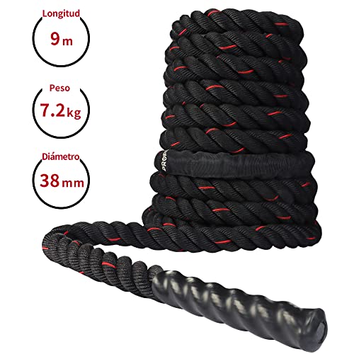 PROIRON Cuerdas de Batalla 9M/12M, Cuerda de Batalla para Gimnasio de Entrenamiento físico, Cuerdas de Ejercicio Pesado de 38mm, Cuerda de ondulación para Entrenamiento de Fuerza