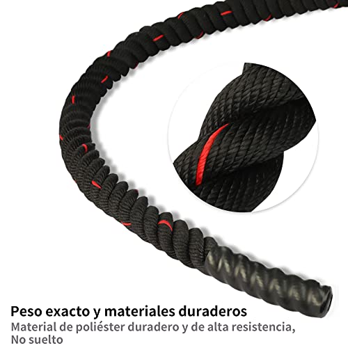 Material de alta calidad: las cuerdas de batalla están hechas de 100% Poly Dac, más pesado que el polipropileno y el poliéster. Las cuerdas de batalla de 9 m pesan aproximadamente 7,7 kg. Las cuerdas de batalla de 12 m pesan aproximadamente 10 kg. La cuerda PROIRON Battle es inodora y respetuosa con el medio ambiente, perfecta tanto para el gimnasio en casa como para el entrenamiento al aire libre.