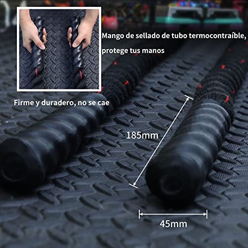 Asas termorretráctiles: cada extremo de la cuerda de combate está sellado con un termorretráctil, ayuda a mantener su forma, protege tus manos y te ofrece un agarre firme y una mejor experiencia de entrenamiento deportivo.