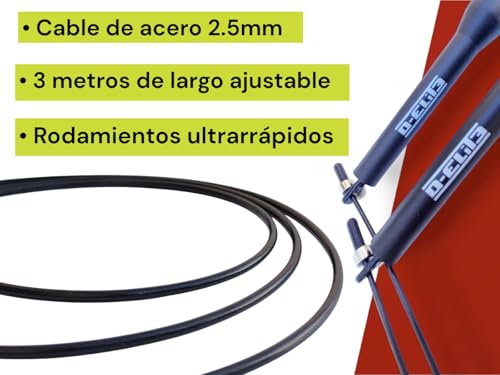 D-ELIT3 Comba CrossFit Profesional, Cuerda de Saltar Profesional, Comba Fitness, Comba de Saltar, Cable de Acero 3m Ajustable con Recubrimiento, Incluye Bolsa