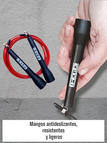 DISEÑO PROFESIONAL: Cuerda de saltar D-ELIT3 con mangos ergonómicos y cable de acero recubierto de goma para un rendimiento óptimo