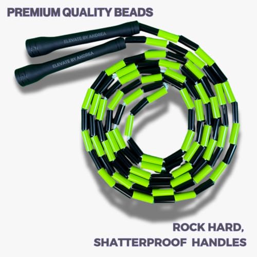 Materiales de alta calidad para el mejor rendimiento: Hecho tanto para principiantes como para atletas competitivos, nuestra cuerda de cuentas cuenta con robustas asas de plástico irrompibles de 5″ en combinación con cuentas de PVC duraderas de 1″, lo que garantiza una larga vida útil. Diseñada para sesiones de interior y exterior, esta cuerda versátil promete durabilidad y fiabilidad.