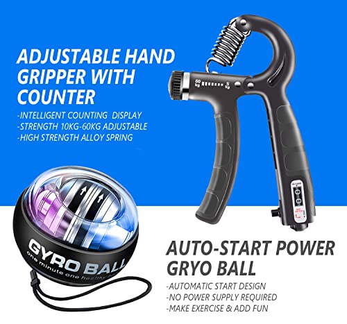 【Kit de entrenador de fortalecimiento de la mano-6 Pack】: El fortalecedores de mano incluyó un agarre de mano ajustable con contador(10-60kg), bola de autogiro, agarre de fortalecedor de mano en forma de D(50Lbs), estiradores de dedos(8,8Lbs), ejercitador de fuerza de dedos, bola de alivio de estrés de mano y estuche de almacenamiento. Múltiples ocasiones diarias para hombres, mujeres, adolescentes, niños y ancianos.