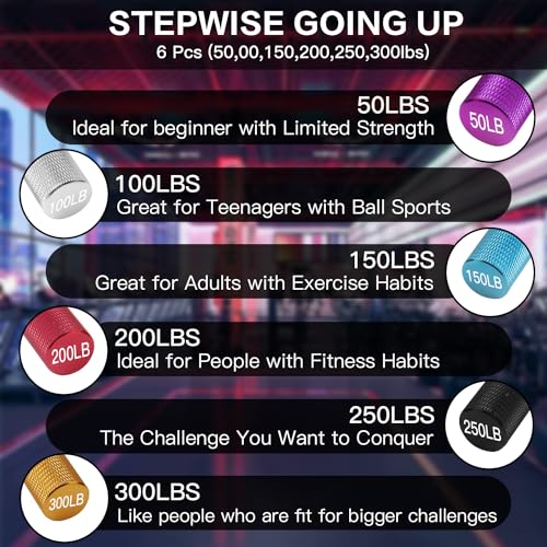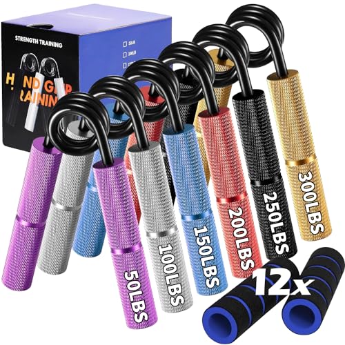 Fortalecedor de Agarre de Mano de Metal,Paquete de 6 (50/100/150/200/250/300 LBS),Entrenador de Muñeca,Pinzas Pesadas Para el Hogar,Gimnasio y Oficina