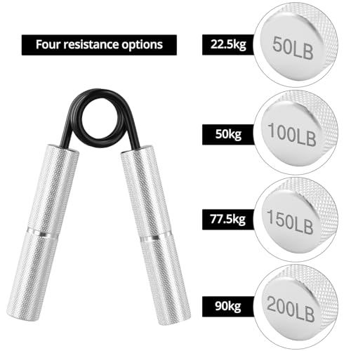 QWORK® Paquete de 4 entrenadores de fuerza de agarre de aluminio para antebrazo – 22,5/45/67,5/90 kg – Robusto y antideslizante