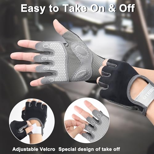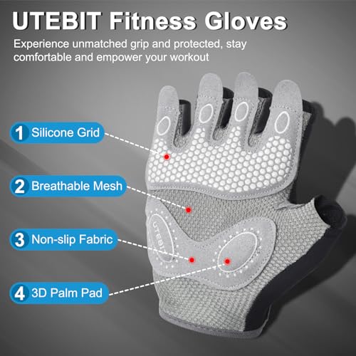 UTEBIT Guantes de Gimnasio para Mujer, Gym Guantes Transpirable Antideslizante con Protección Completa de Muñeca y Palma, para Ciclismo, Levantamiento de Pesas, Musculación, Fitness