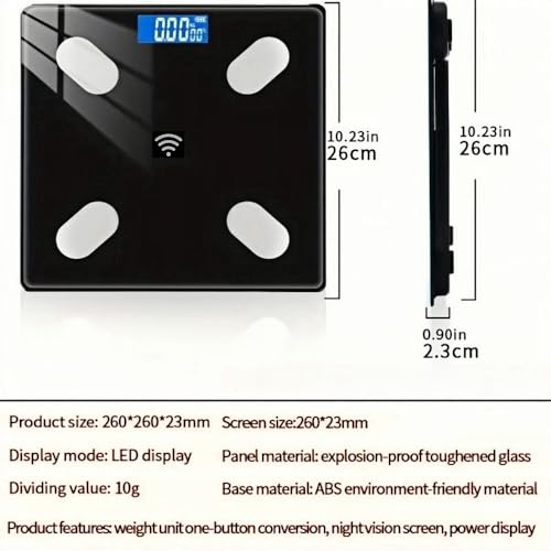 【Monitoree su estado de salud】Impulsada por nuestra tecnología de vanguardia, la báscula de grasa corporal no es solo una báscula de grasa corporal, sino también un monitor corporal. Después de cada medición, puede ver las medidas de su cuerpo directamente en la escala de bioimpedancia y también puede ver los cambios de los datos corporales en la aplicación; puede usar esta escala para determinar la intensidad de su último entrenamiento.