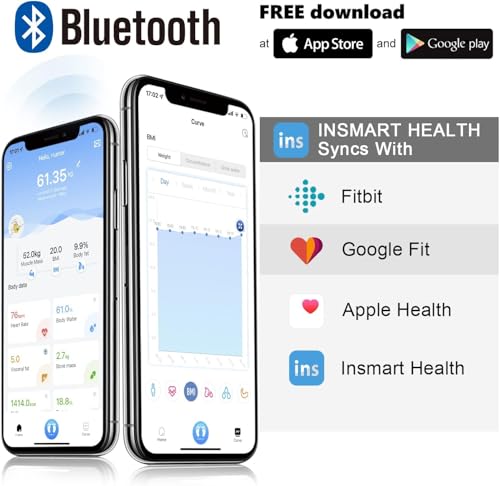 【Amplia compatibilidad con aplicaciones】 Esta báscula inteligente es compatible con teléfonos inteligentes con sistema operativo Bluetooth 4.0 y iOS 8.0 / Android 6.0 o superior. Esta aplicación también se puede utilizar en Apple Watch. Puede configurar Apple Health, Google Fit y Fitbit para realizar un seguimiento de todo su progreso, ya sea que esté a dieta o simplemente haciendo deporte.