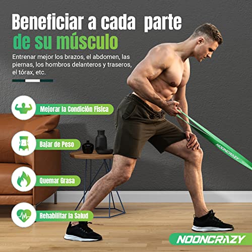 【Adecuado para diferentes ejercicios】Nuestras bandas de resistencia tienen 4 niveles de resistencia: Ultra Light (rojo)/15-35LBS, LIGHT(negro)/25-65LBS, MEDIUM(púrpura)/35-85LBS, fuerte (verde)/50-125LBS. No importa si eres principiante o profesional, nuestras bandas de fitness te ofrecen más flexibilidad y más opciones para entrenamientos y ejercicios. Puedes cambiar entre los cuatro niveles en cualquier momento.