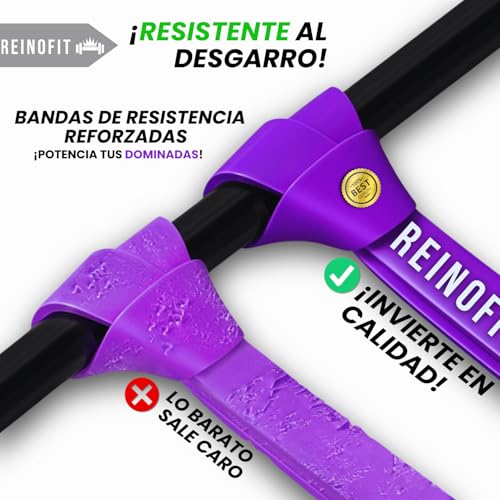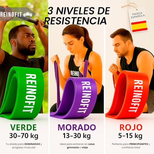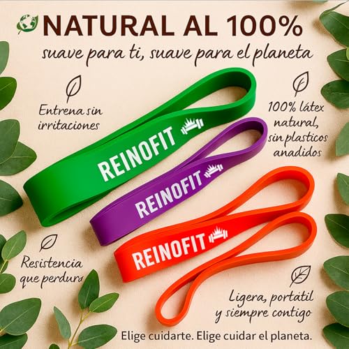 Bandas Elásticas de Resistencia – Bandas de Dominadas, Set de 3 para Pilates, Yoga, Estiramientos, Rehabilitación y Gimnasio – Látex Premium – Reinofit