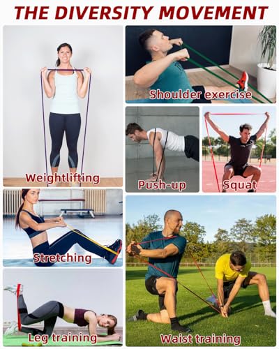 Set de bandas de resistencia con accesorios: Nuestro set de bandas de resistencia viene con 5 bandas de resistencia diferentes, 2 asas, 1 funda protectora, 1 ancla de puerta y 1 bolsa de cordón portátil, 1 manual de instruccionesEstos accesorios se pueden utilizar con bandas de entrenamiento para añadir variedad a su entrenamiento y crear su propio gimnasio personal