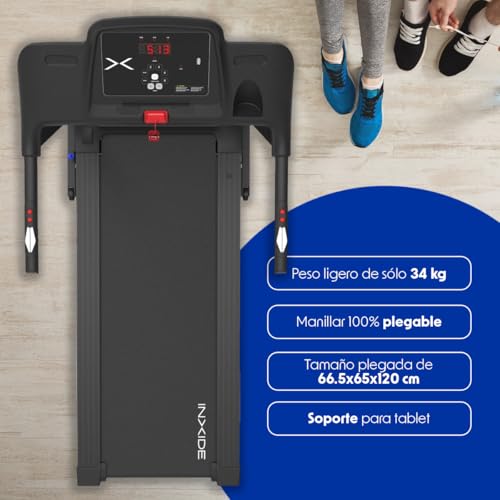 ENTRENAMIENTO PRO EN EL HOGAR: la Cinta de Correr Plegable FIT12 Inxide de Bodytone es la combinación perfecta de alta tecnología y comodidad para su rutina de ejercicio en casa. Con una velocidad máxima de 12 km/h y una superficie de carrera de 42×120 cm, es perfecta para caminatas rápidas como para carreras moderadas.