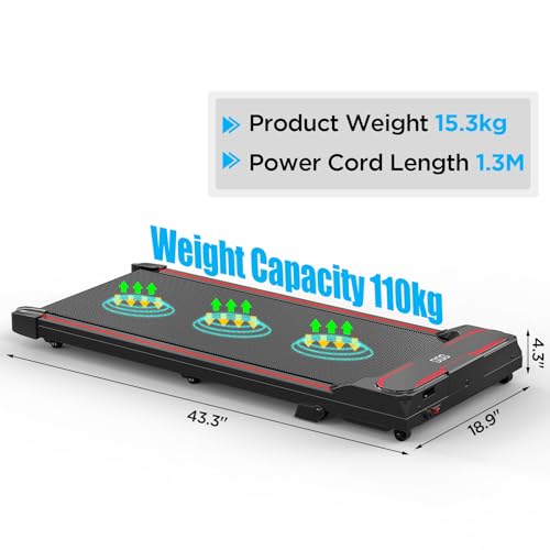 Motor potente y silencioso: Esta cinta de correr para debajo del escritorio utiliza un potente motor de 2.5 HP que soporta un peso máximo de 110 kg. El ruido es inferior a 45 dB y funciona sin problemas, por lo que no tendrá que preocuparse por dañar a su familia y vecinos.