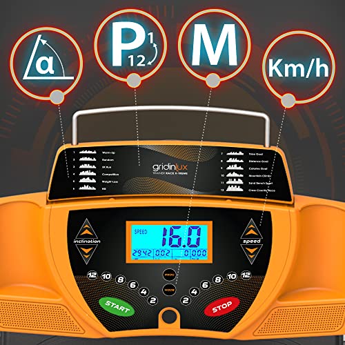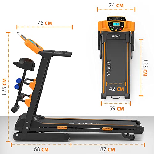 gridinlux® | Cinta de Andar elétrica X-Treme 1800W | 12 Programas | Velocidad Ajustable de 1 a 16 km | Registro de Actividad | Pesas | con Ruedas
