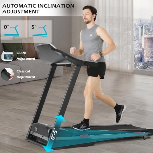【MULTIFUNCIONAL】 Esta cinta de correr tiene una gran pantalla LCD que muestra el Tiempo/Distancia/Velocidad/Calorías/Pulso. Los sensores de pulso de las asas pueden controlar tu ritmo cardíaco. La llave de seguridad hace que su entrenamiento sea más seguro. La inclinación ajustable automáticamente hace que su entrenamiento en casa sea más variado. Con el soporte para MP3 y tableta, no sólo puedes entrenar fácilmente, sino también divertirte más.