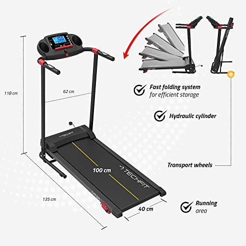 TechFit MT95 Cinta de Correr Eléctrica Motorizada Plegable, Potencia Máxima del Motor de 2.5 HP, con 3 Pasos de Inclinación Manual, 16 Programas Preestablecidos, Pantalla LCD, Bluetooth y MP3