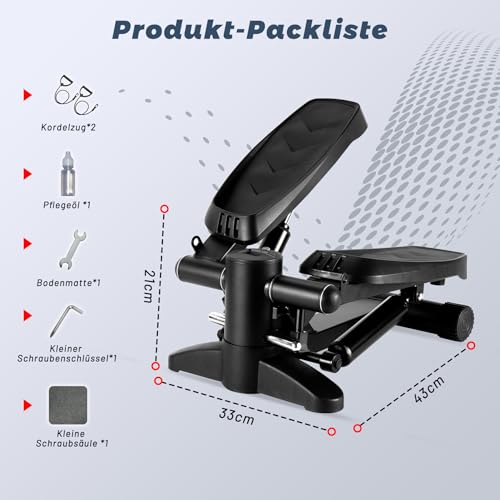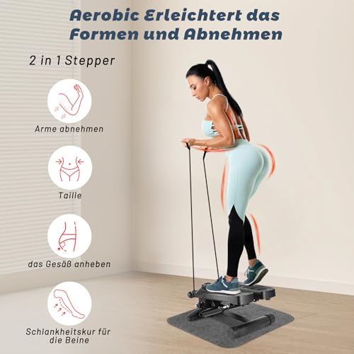 【Stepper Multifuncional Para el Hogar】Stepper para el hogar puede girar todo el cuerpo, lo que puede entrenar eficazmente la cintura, las caderas, las piernas y los brazos, y al mismo tiempo, se puede lograr la quema de grasa en muchas partes del cuerpo en el stepper para dar forma a una forma perfecta del cuerpo. También mejora la función cardiorrespiratoria y la capacidad respiratoria aeróbica. Los ejercitador de piernas son ideales para perder peso, ponerse en forma y entrenar a diario