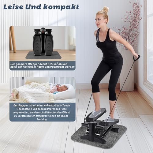 BOWEICORE Stepper para el Hogar, Steppers para Ejercicios con Pantalla LCD y Bandas de Resistencia para Principiantes y avanzados, para Entrenamiento de piernas y glúteos Máximo 150 kg