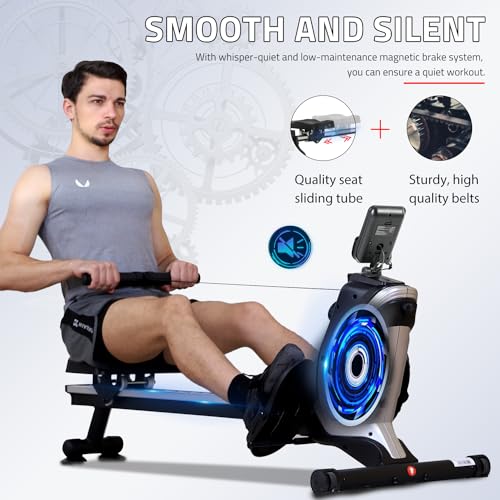 ISE Máquina de Remo para casa, Silenciosa, Freno Magnético, Máquina de Remo con 8 Niveles de Resistencia, Fuerza de Tracción máx de 15KG, Corredera de Aluminio, Nuevo Diseño Interno
