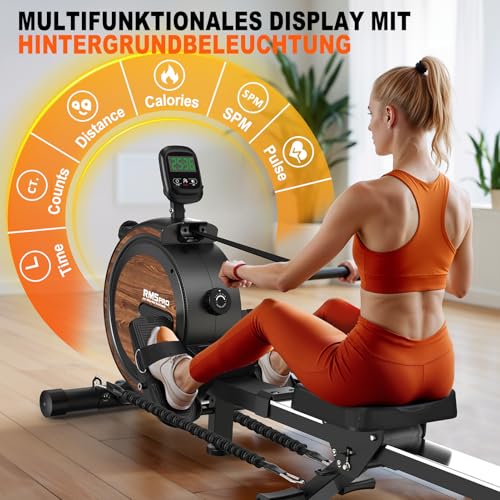 Seguimiento avanzado del rendimiento: La pantalla de alta tecnología le permite seguir sus objetivos de fitness con precisión. Ya sea el tiempo, el número de remadas, la distancia o las calorías quemadas, todos los detalles de su entrenamiento se muestran claramente. Indicadores clave como SPM (remadas por minuto) y PULSO (frecuencia cardíaca) también son fáciles de leer. Además, la función Bluetooth integrada permite una conexión sin problemas con Kinomap para una experiencia de entrenamiento interactiva y envolvente.