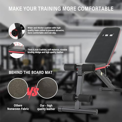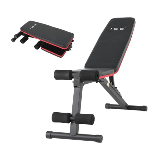 ISE Banco Musculación Plegable, Banco De Pesas Musculacion, Banco Pesas Inclinable,Reclinable y Plano, Banco Abdominales en casa, Banco Gimnasio Max.100KG