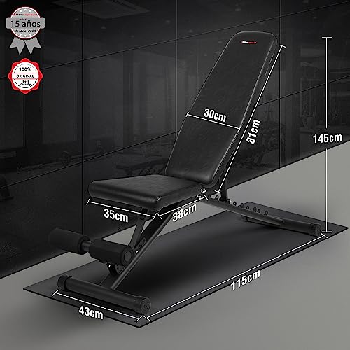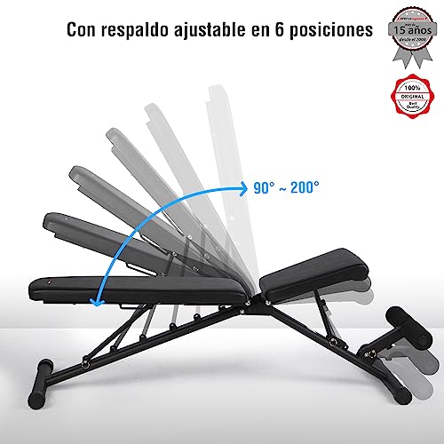 Banco de entrenamiento con asiento acolchado ajustable en 3 posiciones y respaldo ajustable en 6 posiciones, para 21 posiciones de entrenamiento diferentes