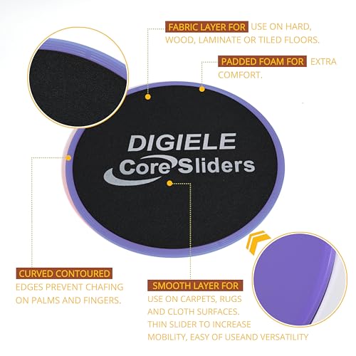 DIGIELE Discos Deslizantes, 2 Core Sliders Fitness, Sliders Ejercicio de Doble Cara y Glide Discos Vírgenes para Uso en Pisos, Yoga Pilates Core – Entrenamiento de Cuerpo Completo y Acondicionado