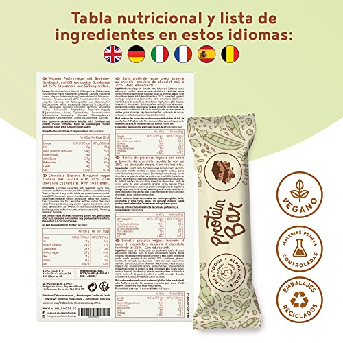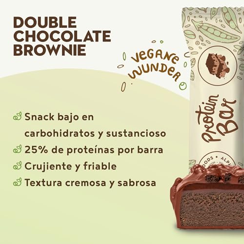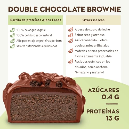 Alpha Foods Barritas Proteína Vegana 15x 55gr – Sabor Brownie de Chocolate Doble – Barritas Energéticas Baja en Azúcar, Proteínas Vegetales 13 gr con Chocolate