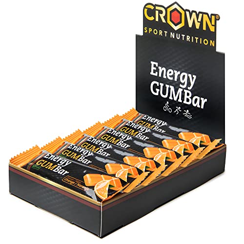 Crown Sport Nutrition Energy GUM Bar | Barrita Energética de Gominola con Carbohidratos, Sales y Aminoácidos | Textura blanda, con y sin cafeína | Vegana