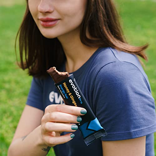 EVOTION PRO – Barritas energeticas (20 x 45g), Energía Rápida, Ideal para Ciclismo y Running, 4g de proteína por Energy Bar – Fibra, Proteínas y Carbohidratos Naturales – Sabor Miel & Jengibre