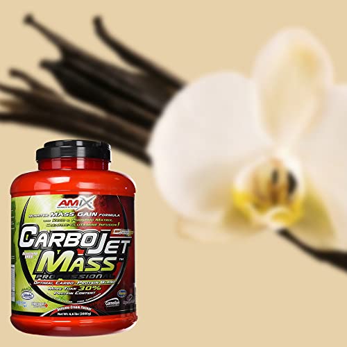 AMIX – Complemento Alimenticio – Carbojet Mass Professional – Carbohidratos y Proteínas para Aumentar la Masa Muscular – Concentrado Proteína de Suero – Recuperador Muscular – Sabor Vainilla – 3 KG