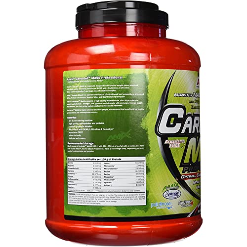 COMPLEMENTO ALIMENTICIO: Amix Carbojet Mass Professional está formado por una mezcla de carbohidratos y proteínas de alta calidad;Se trata de una completa fórmula libre de aspartamo y compuesta, entre otros ingredientes, por aislado de proteína de suero CFM, vitargo, creatina o glutamina