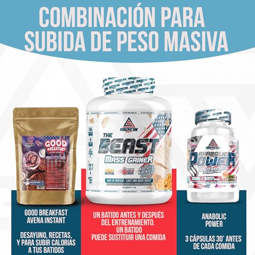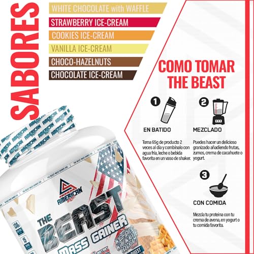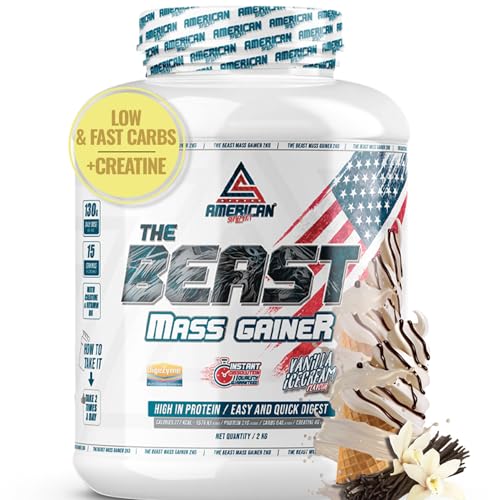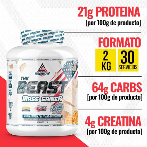 AS American Suplement | The Beast Mass Gainer | 2 kg | Vainilla | Contiene Creatina Monohidrato | Ayuda a Subir de Peso | Alto en Carbohidratos y Proteínas