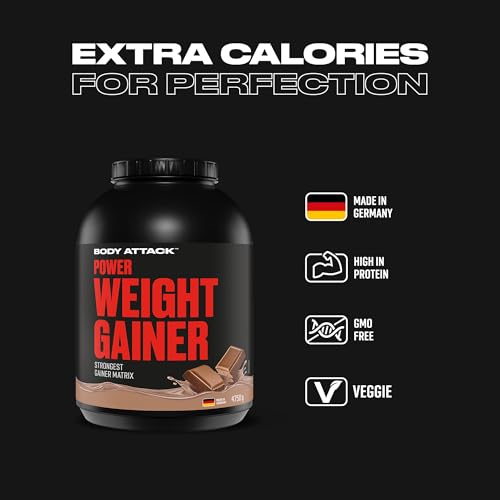 El Power Weight Gainer es adecuado para atletas de fuerza y culturistas que quieren desarrollar masa y aumentar sus necesidades de calorías y proteínas de forma selectiva. Especialmente para los llamados ganadores duros, las personas que son difíciles de ganar peso, el ganador de peso corporal Attack Power es un complemento óptimo para las comidas diarias, ya que le dan a su cuerpo calorías adicionales. Por porción diaria es aproximadamente 840 kcal, además 118 g de carbohidratos y 54 g de proteína, de los cuales 11,5 g de BCAA.