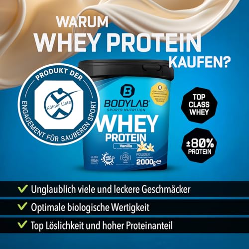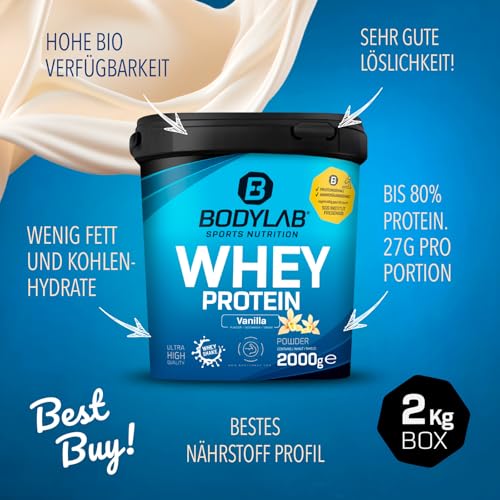 Bodylab24 Whey Protein Powder Frambuesa-Yogur 2kg, polvo rico en proteína para músculos más fuertes, la proteína de suero puede promover la construcción de músculo, con 80% de proteína, sin aspartamo