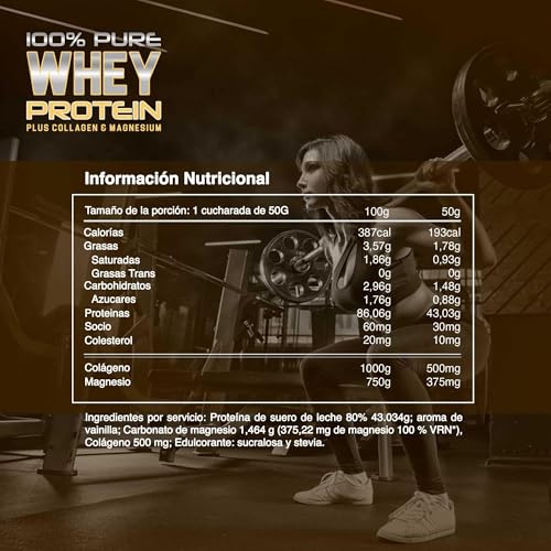 ✅ LA WHEY PROTEIN MÁS COMPLETA Y EXCLUSIVA – 100% Pure Whey Protein X3 es un producto pionero e innovador que contiene componentes activos de calidad insuperable. La proteína de suero utilizada en nuestro producto es exclusiva de nuestro laboratorio, con una pureza y asimilación como ninguna otra proteína puede ofrecer. Además, 100% Pure Whey Protein X3 es el único producto que contiene también colágeno puro y magnesio asimilado, para conseguir que la recuperación muscular sea completa.