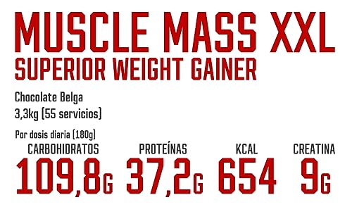 MUSCLE MASS XXL – SUPERIOR WEIGHT GAINER (Belgian Chocolate, 3.3 Kg (7.26 Lbs))