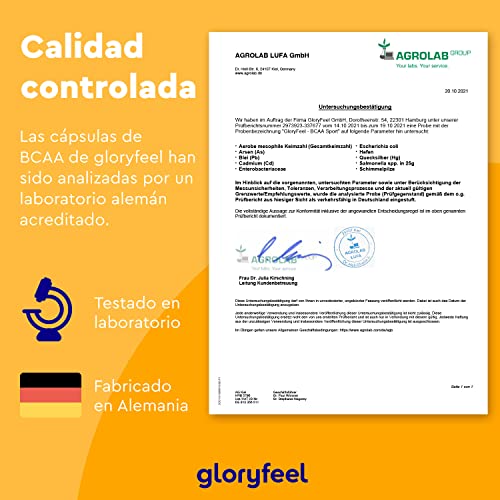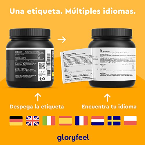 ✅ PRUEBAS RIGUROSAS MÁS ALLÁ DE LA NORMA – Fabricados en Alemania conforme a las normas más exigentes (certificación ISO, HACCP), los productos gloryfeel se someten también a rigurosas pruebas de estabilidad para garantizar una eficiencia de los ingredientes constante a lo largo de su fecha de caducidad y establecer nuevos estándares industriales. Este enfoque innovador y pionero refuerza nuestro liderazgo en cuanto a la garantía de calidad. Certificados de análisis disponibles.