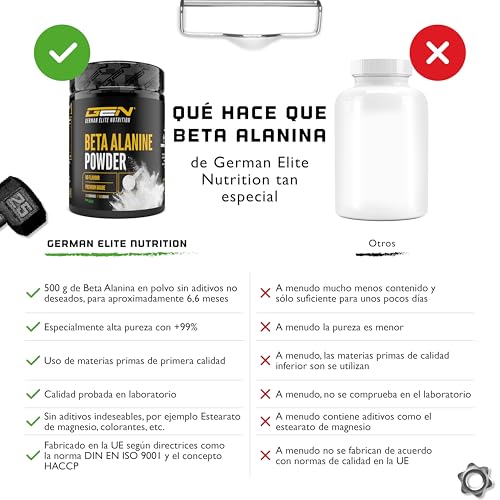 AMINOÁCIDO DE PRIMERA CALIDAD: Nuestro polvo de Beta-Alanina tiene una pureza particularmente alta con +99%. El polvo es muy fino y se disuelve perfectamente en el agua.