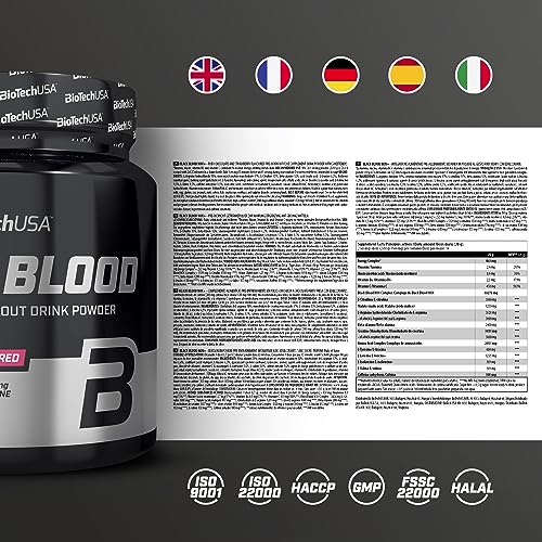 BioTechUSA Black Blood NOX+ | Fórmula pre-entrenamiento | con cafeína, creatina, tirosina | sin azúcar | 340 g | Ruby berry