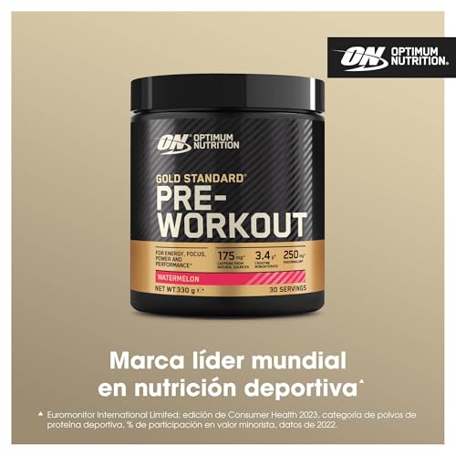 Optimum Nutrition Gold Standard Polvo Pre Entrenamiento, Bebida Energética con Monohidrato de Creatina, Beta Alanina, Cafeína y Complejo de Vitamina B, Sabor Sandía, 30 porciones, 330 g