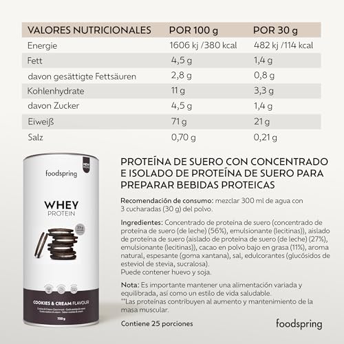 foodspring Whey Protein Pulver (750g, Cookies n’ Cream)