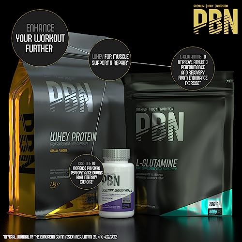 Premium Body Nutrition – Proteína de suero de leche en polvo, 1 kg (Paquete de 1), sabor Plátano, sabor optimizado