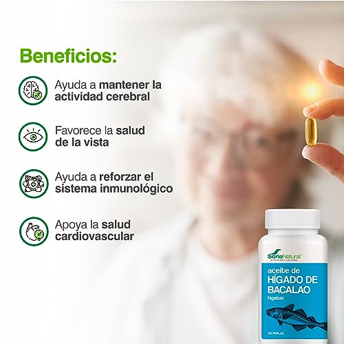 Soria Natural Hígado de Bacalao – Perlas ricas en Omega 3, Vitamina A y Vitamina D para un Corazón Sano – Sistema Circulatorio y Salud Cerebral – 125 Perlas