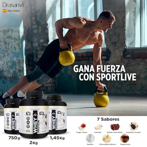 SPORT LIVE Concentrado de proteinas de suero de leche | Whey Protein en polvo con L-Glutamina y L-Leucina | Ayuda a aumentar tu masa muscular | Mejora tus batidos |Chocolate Blanco | 750 GR