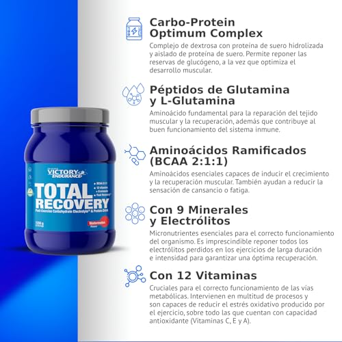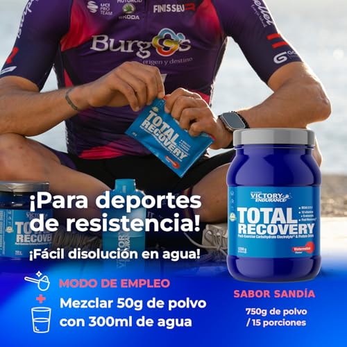 Victory Endurance Total Recovery (1250g) Sabor Sandía, Preparado Bebida Post-Entreno de Carbohidratos Electrolitos y Proteínas, Con BCAA 2:1:1, 12 Vitaminas y 9 Minerales, Recuperación Rápida