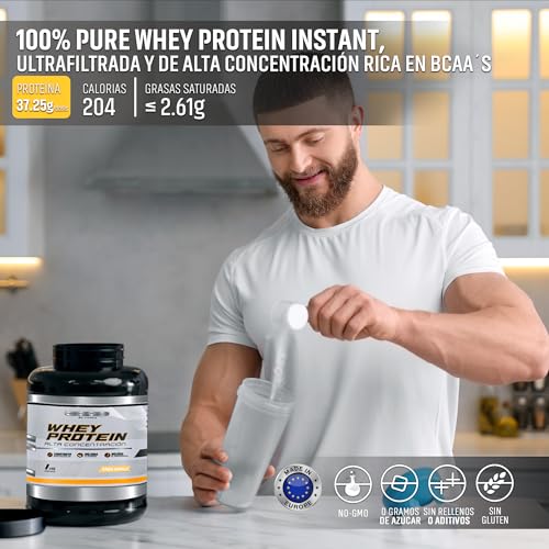 Whey Protein en Polvo 37,25gr/dosis | 100% Proteína Pura | Aumenta masa muscular y mejora la recuperación | Alto valor proteico y nutricional para los músculos | BCAA y Glutamina | 1Kg