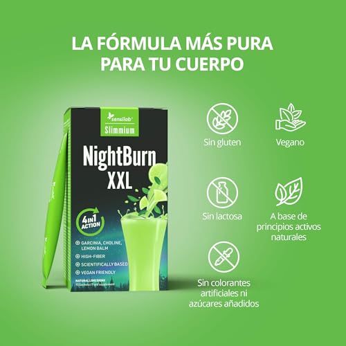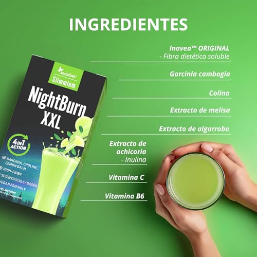 Garcinia Cambogia, Achicoria y Colina | Termogenico alto en Fibra | Ayuno Intermitente | 10 Sobres para 10 Días | Con E-Libro Gratuito | NightBurn XXL Slimmium Sensilab