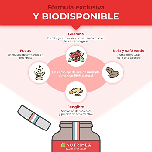 Potente Quemagrasas Abdominal Fat Burner Natural l Guaraná Café Verde Jengibre Kola Fucus l Supresor del Apetito l 90 Cápsulas Veganas Fabricado en Francia