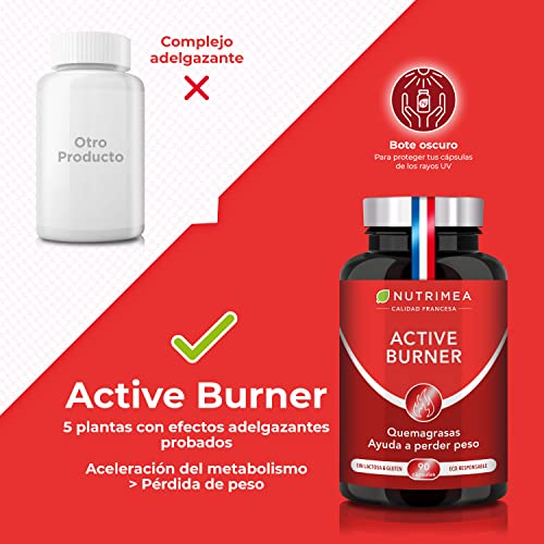 NUTRIMEA: Active Burner ha sido desarrollado a partir de una rigurosa selección de las mejores plantas. Sin OGM, Sin Gluten y Sin Estearato. Es apto para Vegetarianos y Veganos. Nutrimea garantiza la calidad de los ingredientes que selecciona y su origen. Nuestros productos son fabricados en Francia y certificados ISO 22000, HACCP y GMP